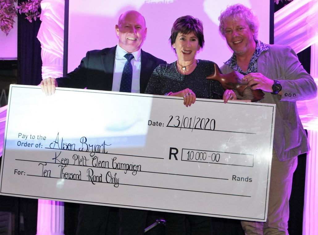 Alison Bryant of the Keep Plett Campaign is the winner of the Caroline Reid Award for the Cleanup Champion of 2019 – a new, annual award established by Plastics|SA to recognise and reward excellence in South Africa by an individual in the field of marine and coastal clean-ups.