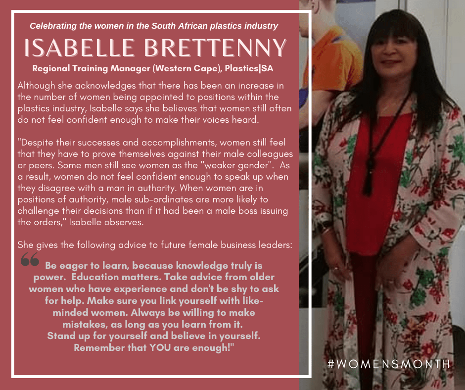 As South Africans celebrate women this month, Plastics SA would like to honour some of the shining stars who contribute to the success of the South African plastics industry.