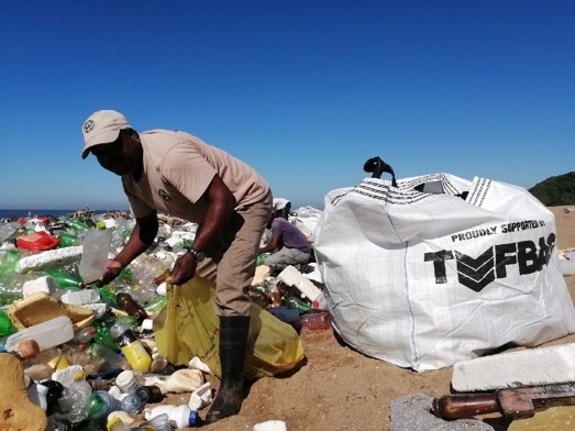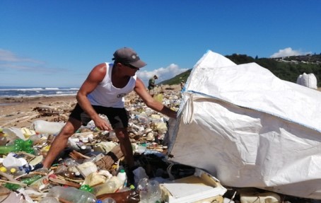 After conducting a detailed needs analysis of the situation, clean-up teams from the local community,  managed by the coordinators, have been employed during May and June  to help  remove macro and micro pieces of litter from the major beaches and rivers in the Durban area. Thanks to the generous donations made by key role-players in the plastics industries such as Polyco, Petco, Safripol and Plastics SA, this clean-up team and  the waste collectors are now equipped with litter bags, chain saws, rakes, gloves, boots and other PPE and will be remunerated with a daily allowance. Their clean-up efforts during the next two months will be focussed on the “hot spot” dirty areas and will continue to be coordinated by Clean Surf Project (member of Inkwazi Isu Project – Fish Eagle Project South Coast River Catchment), Tri-Eco Travel and Tours (Durban North areas) and Durban Solid Waste.