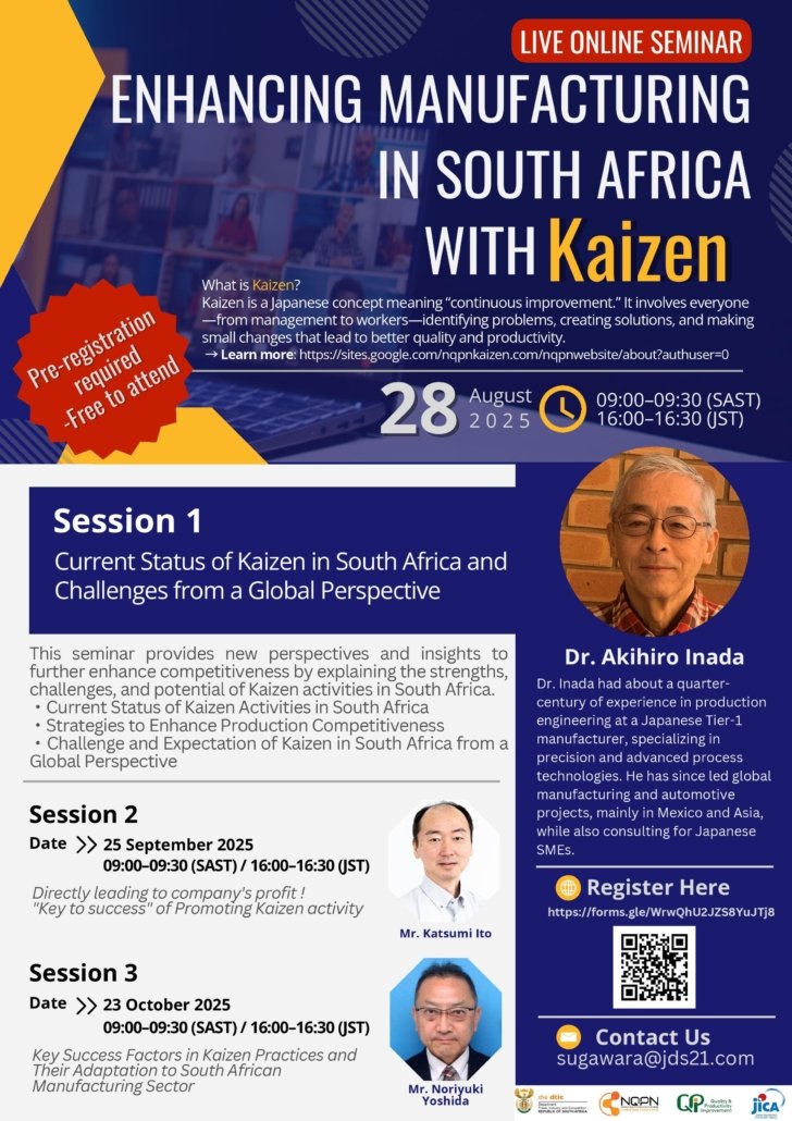 We are pleased to announce an online seminar series organized by the National Quality and Productivity Network (NQPN), which promotes Kaizen knowledge and techniques nationwide in a sustainable manner.