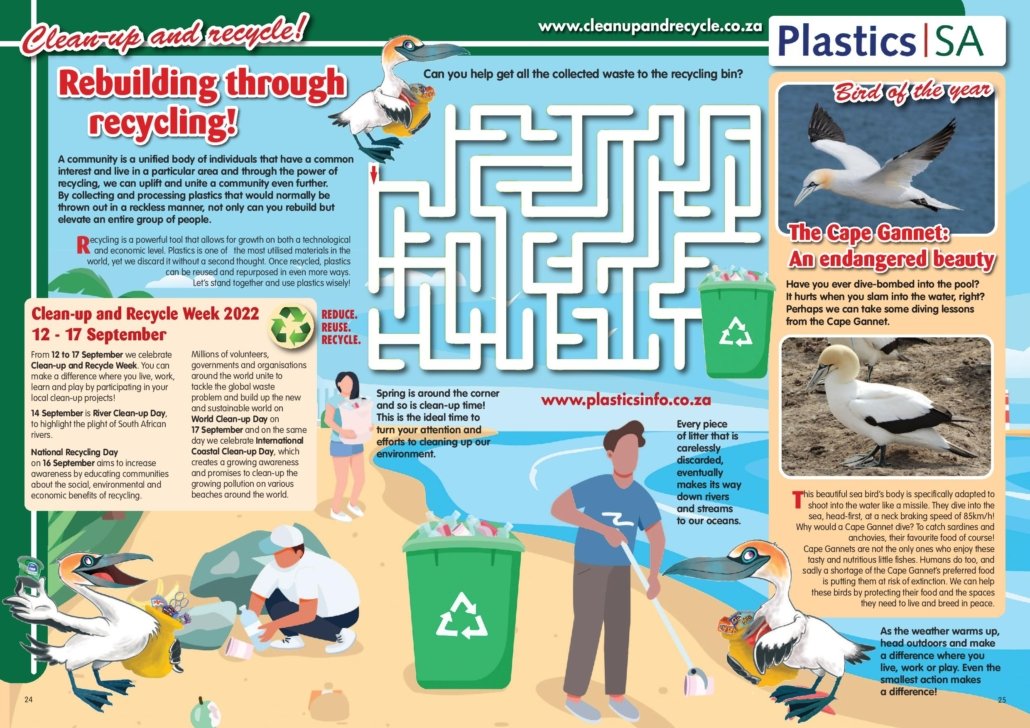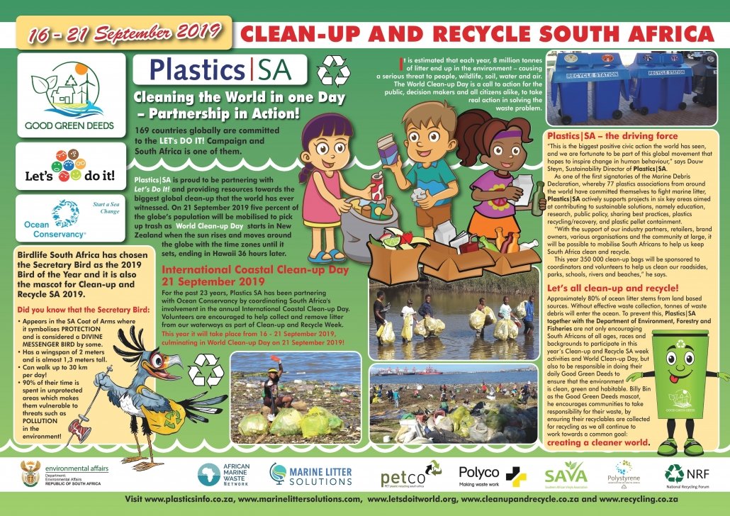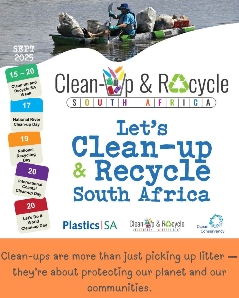 This campaign runs from August, through to December, creating awareness in a fun way, of the need to protect our environment from plastic pollution. For more information on Clean-up and Recycle Week, visit www.cleanupandrecycle.co.za and GET INVOLVED IN A CLEAN-UP NEAR YOU.